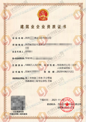 陕西西安市 施工劳务不分等级+地基基础专包三级